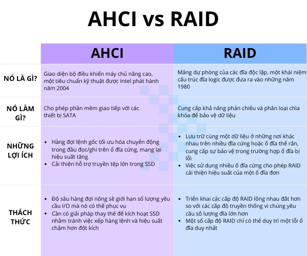 AHCI so với RAID: Công dụng, ưu điểm và tính năng