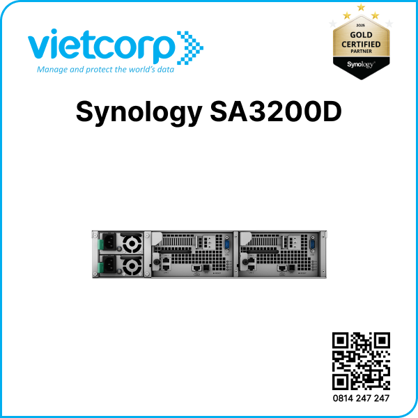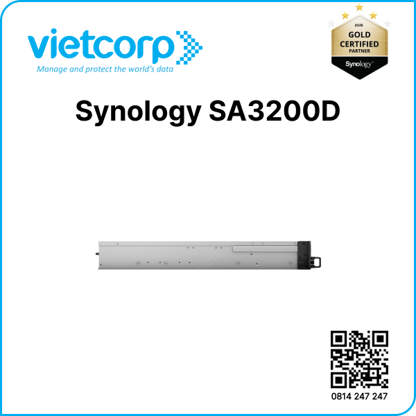 | Ghi chú | Synology High Availability là gói sản phẩm tích hợp cho SA3200D để tối ưu thời gian hoạt động của dịch vụ. SA3200D không hỗ trợ tạo cụm máy tính sẵn sàng cao với một thiết bị máy chủ khác. |