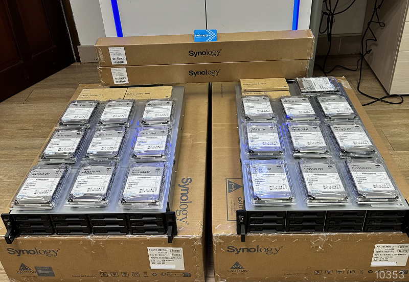 • Gắn thêm 6 ổ cứng Synology HAT5300-16T (tổng dung lượng 96TB) nhằm tăng khả năng lưu trữ dữ liệu cho khách hàng.