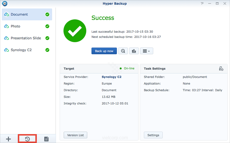- Cài đặt Hyper Backup. Sau đó, tạo Data backup task.