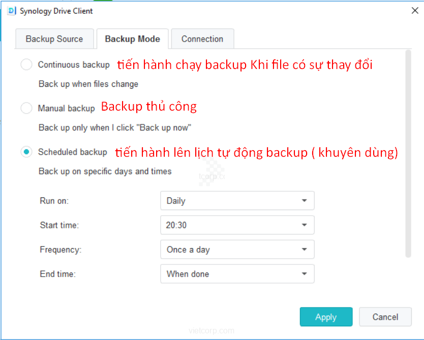 Bước 6: Chọn chế độ backup đặt lịch chạy tự động