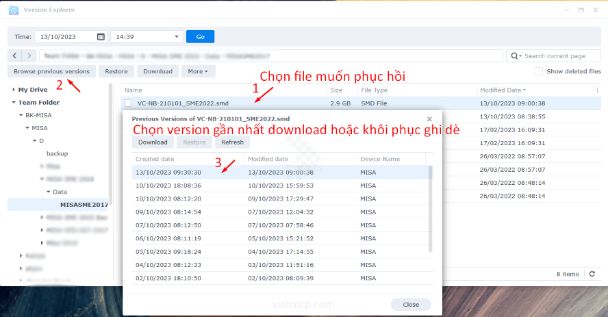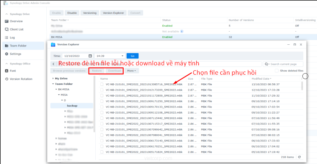 Lưu ý: Synology Drive cho phép phục hồi tối đa 32 version