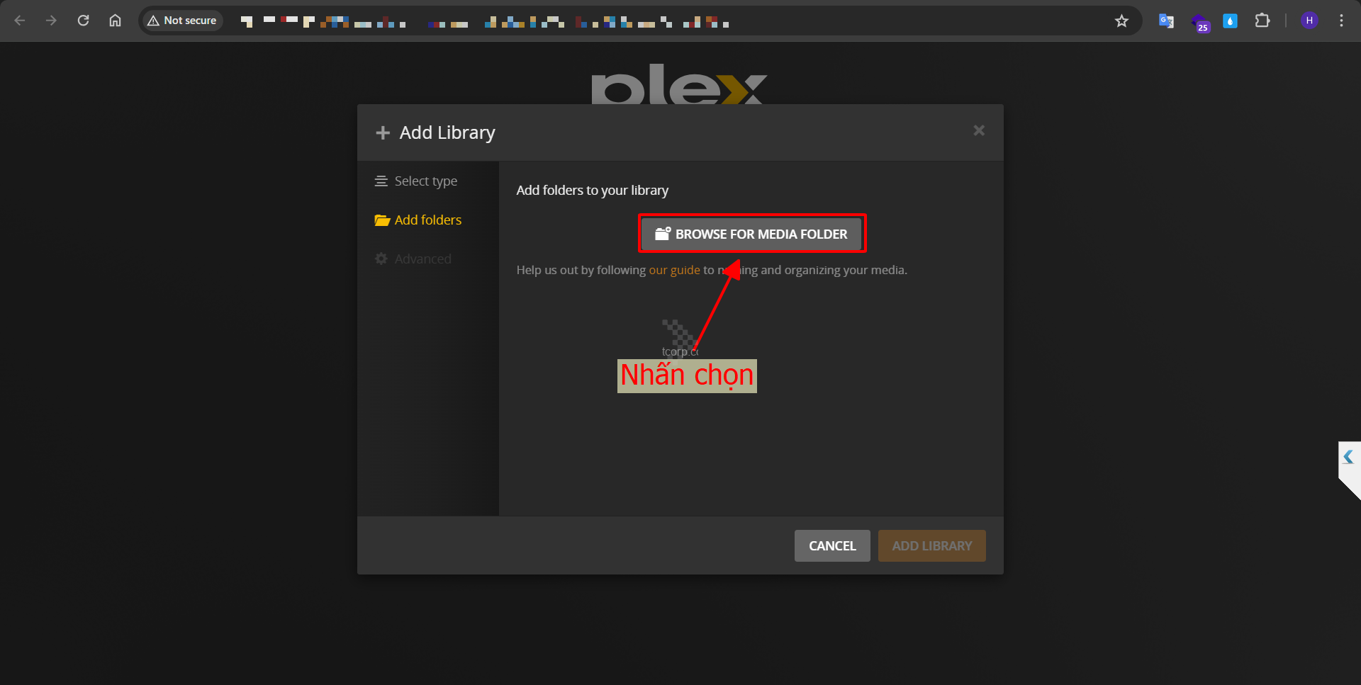 Nhấn chọn BROWSE FOR MEDIA FOLDER