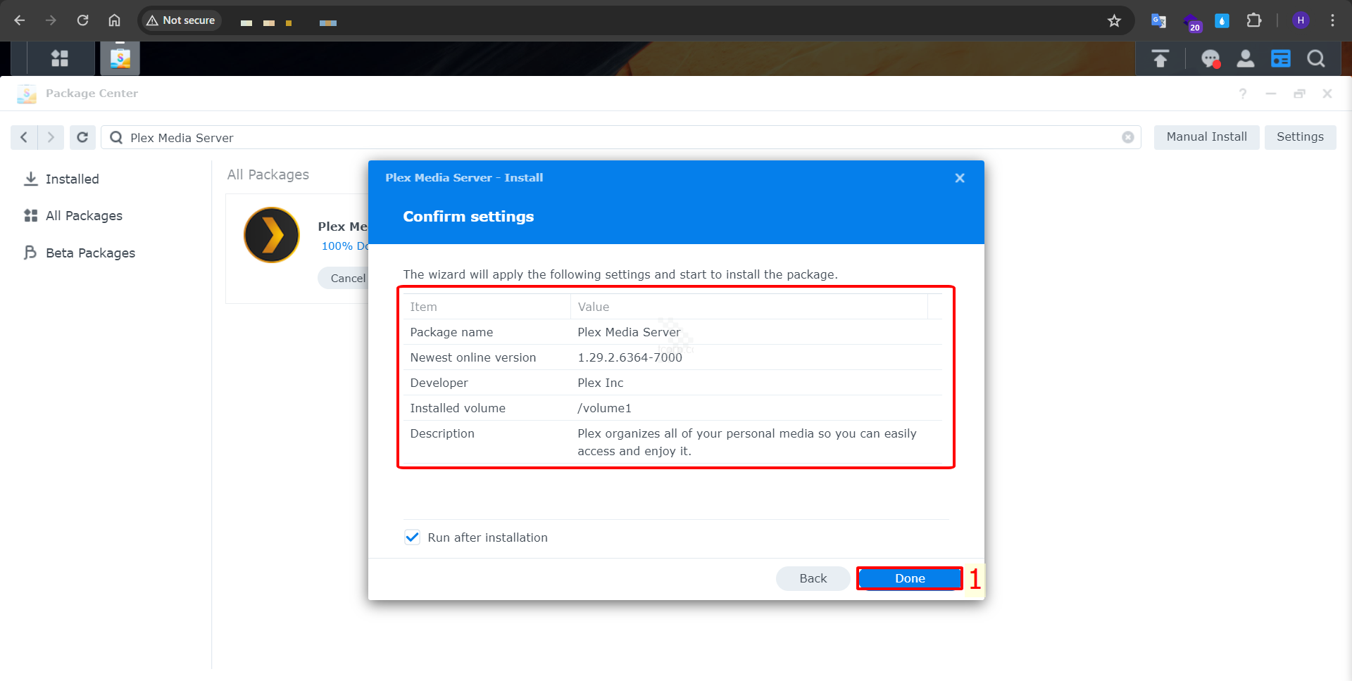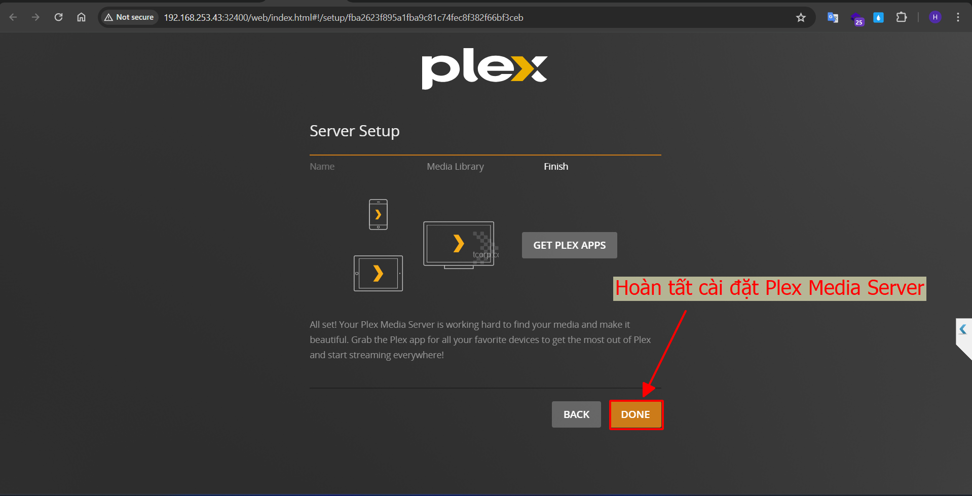 Bước 17: Nhấn chọn Done để hoàn tất cài đặt cho Plex Media Server