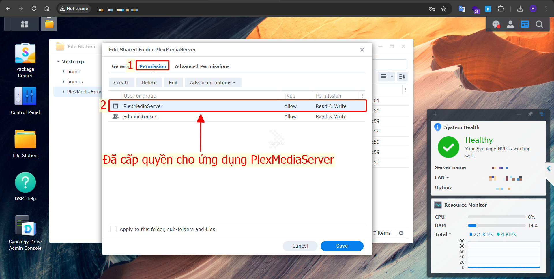 HƯỚNG DẪN CẤP QUYỀN ĐỂ TRUY CẬP PLEX MEDIA SERVER TRÊN NAS SYNOLOGY