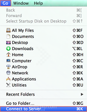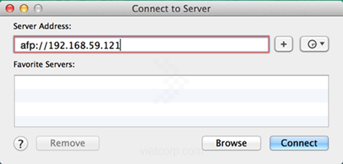 4. Nhập địa chỉ IP cho NAS Synology của bạn, Ví dụ: “afp: //192.168.59.121”. Click Connect để tiếp tục.