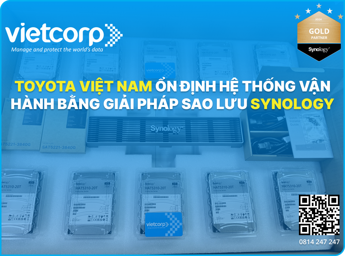 Sau khi đánh giá nhiều giải pháp từ các nhà cung cấp trên thị trường, Toyota Việt Nam được tư vấn và triển khai từ Vietcorp, đã quyết định sử dụng các thiết bị dòng SA, UC, RS và ActiveProtect của Synology để củng cố chiến lược bảo vệ dữ liệu. Công ty đã triển khai hai kế hoạch bảo vệ dữ liệu riêng biệt, dành cho dữ liệu quan trọng và dữ liệu vận hành hàng ngày.