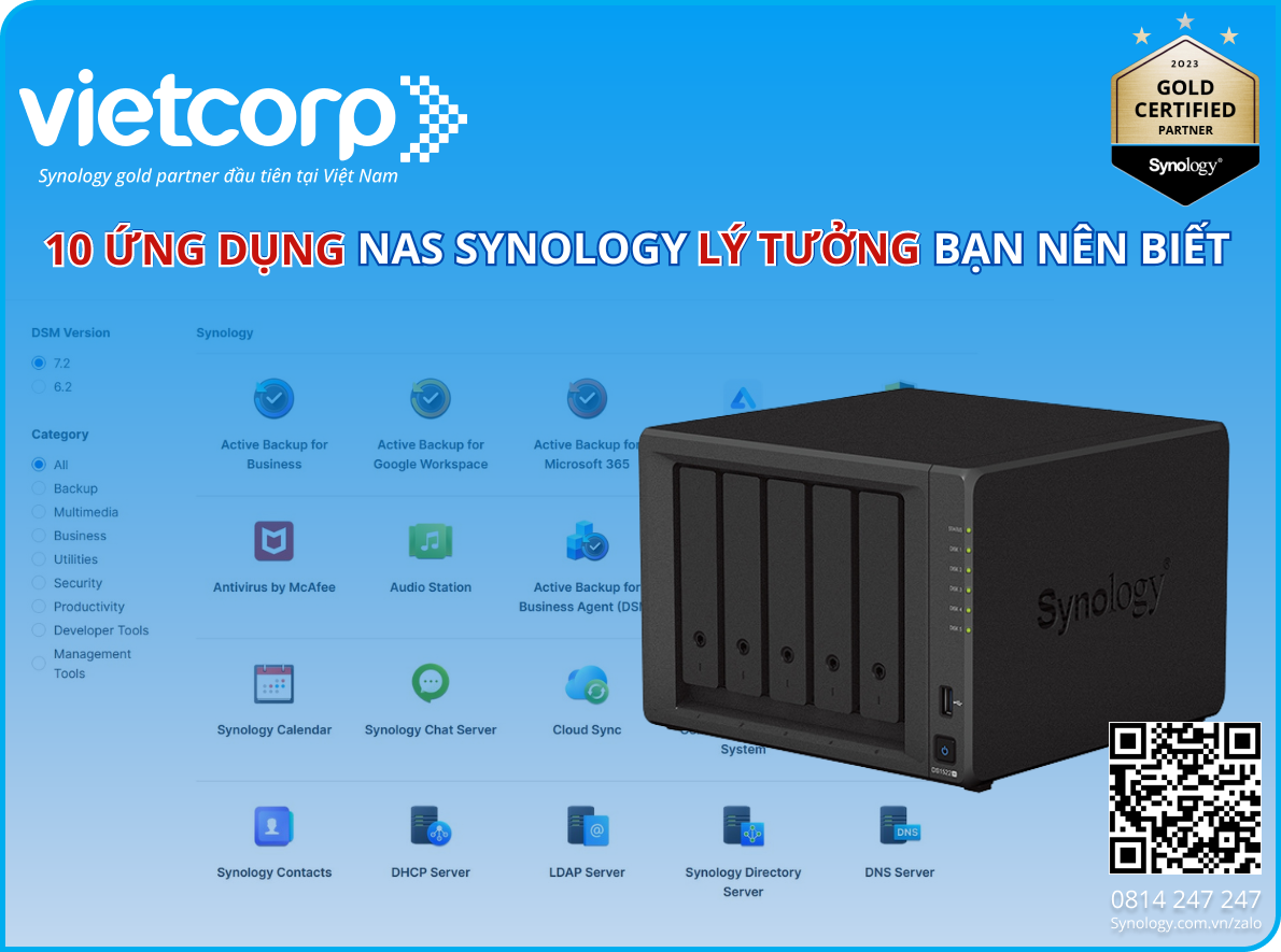 Vietcorp tự hào là Synology Gold Partner đầu tiên tại Việt Nam. Chuyên cung cấp và triển khai các giải pháp NAS Synology hiệu quả cho cá nhân và doanh nghiệp. Kho hàng lớn luôn đáp ứng đa dạng sản phẩm cho mọi nhu cầu của quý khách. Liên hệ chúng tôi qua 0814 247 247 để được tư vấn miễn phí, nhanh chóng nhất!