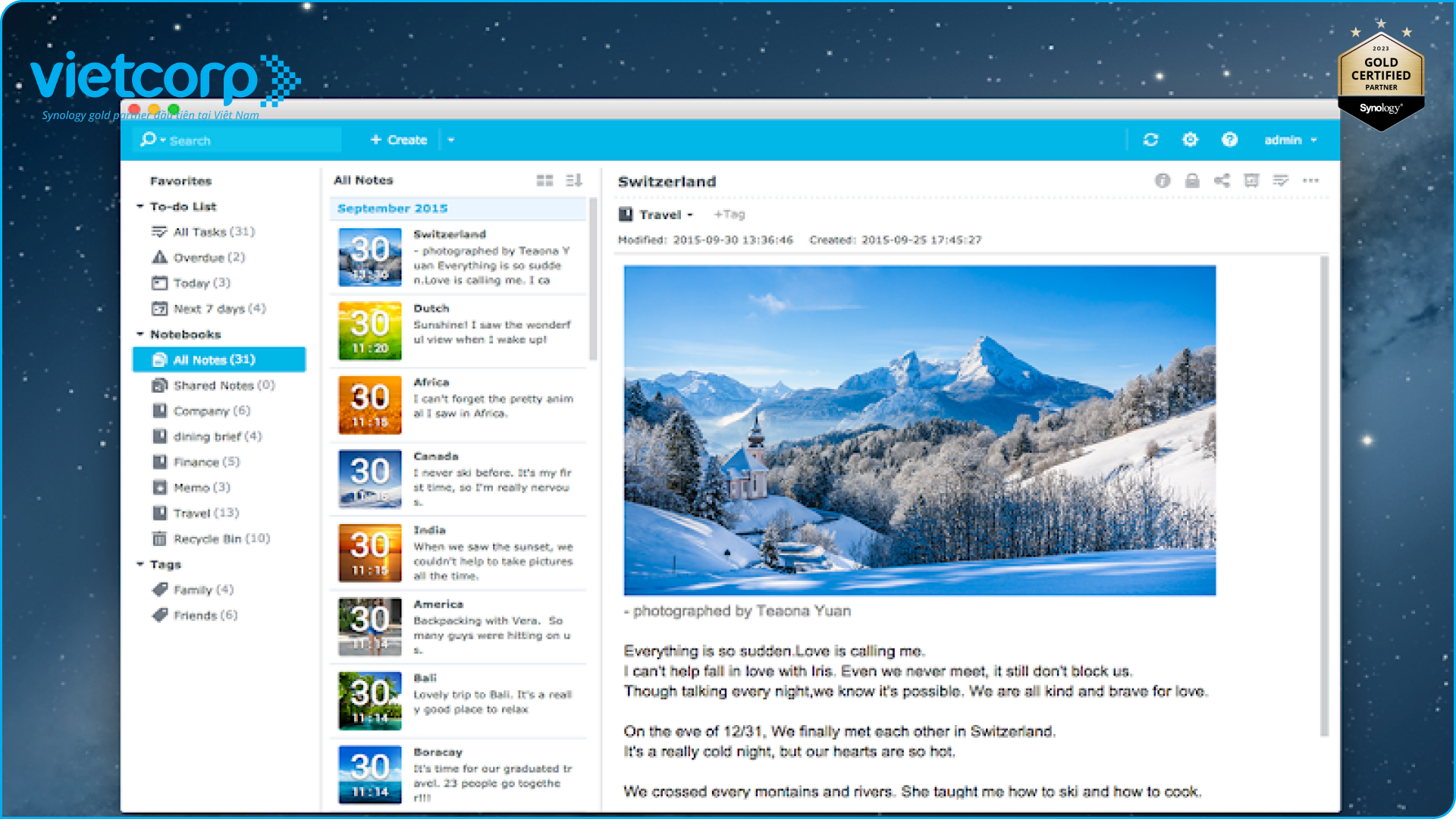 Nếu bạn đang tìm kiếm một ứng dụng Synology có quyền truy cập vào ghi chú của mình trên thiết bị di động và máy tính để bàn, Notes Station sẽ nằm trong tầm ngắm của bạn. Ứng dụng cho phép bạn tạo và đồng bộ hóa ghi chú trên tất cả các thiết bị của mình đồng thời đảm bảo tính bảo mật và quyền riêng tư cao nhất.