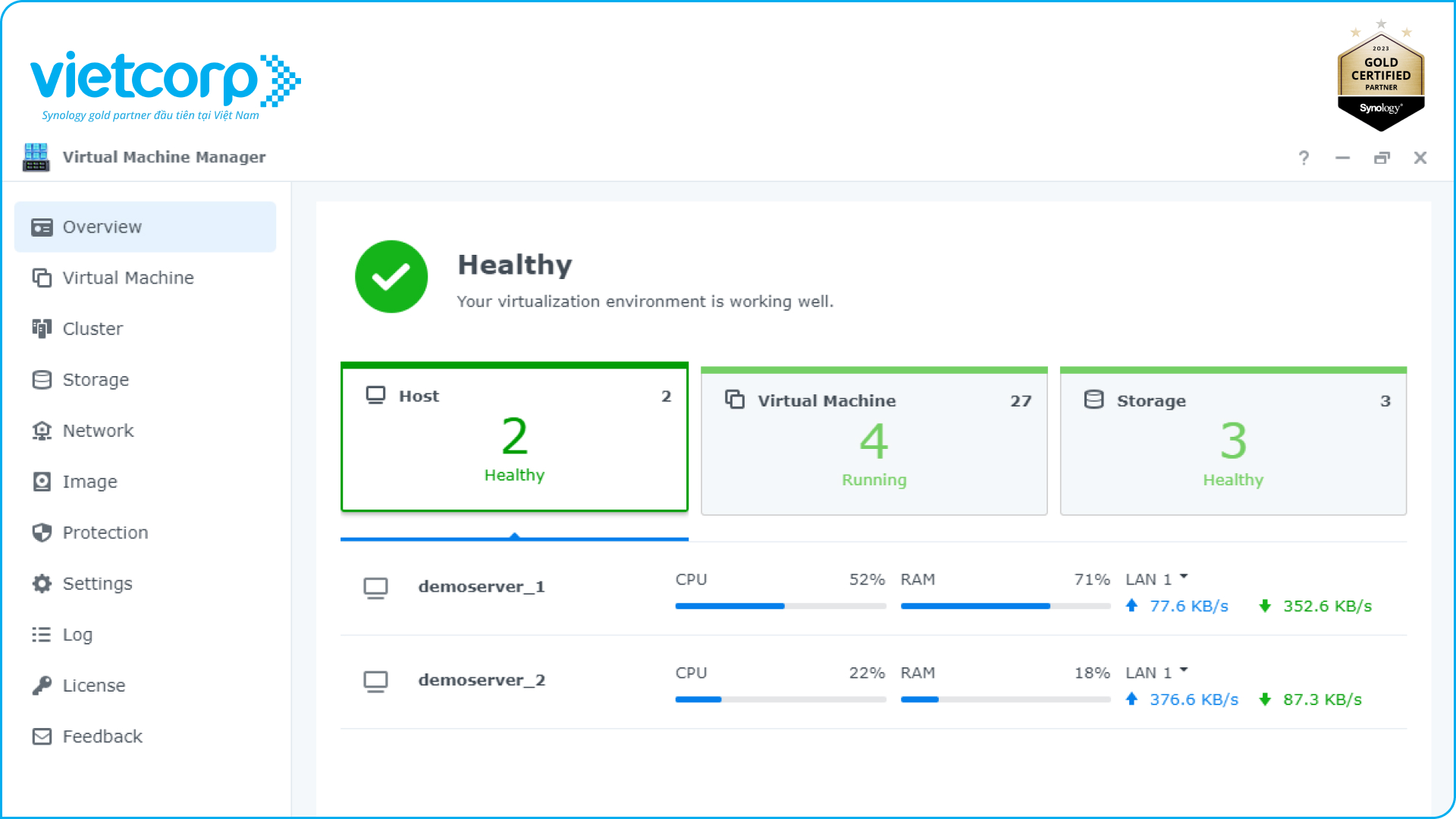 - Giám sát và quản lý tập trung – tạo một cụm máy chủ NAS Synology để giám sát và quản lý nhiều máy ảo.