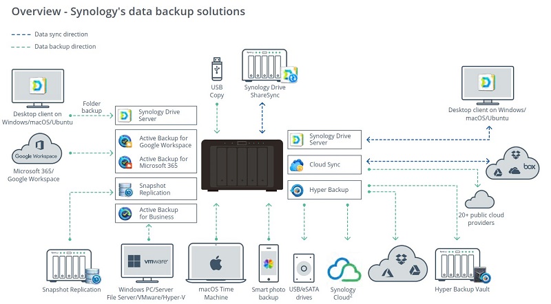 NAS Synology là một thiết bị lưu trữ đi kèm với nhiều chức năng backup dữ liệu khác nhau. Cho dù bạn là doanh nghiệp hay người dùng cá nhân, bạn có thể xây dựng một hệ thống an toàn và môi trường bảo mật backup dữ liệu một cách nhanh chóng và dễ dàng. Hướng dẫn giải pháp này sẽ giới thiệu tất cả các tính năng backup do Synology cung cấp.