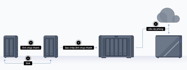 Tạo Snapshot thường xuyên lên đến 15 phút cho iSCSI LUN, bảo vệ tức thì lưu trữ cho ảo hóa.