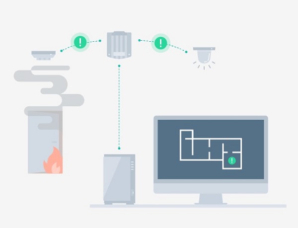 Kết nối với bộ cảm biến khói và thiết lập quy tắc hành động để kích hoạt đèn LED khi phát hiện khói. Vị trí của sự kiện sẽ được đánh dấu trên Maps trong Monitor Center, giúp nhân viên an ninh dễ tìm thấy địa điểm chính xác.