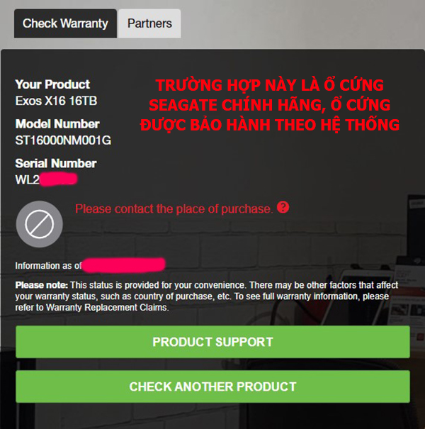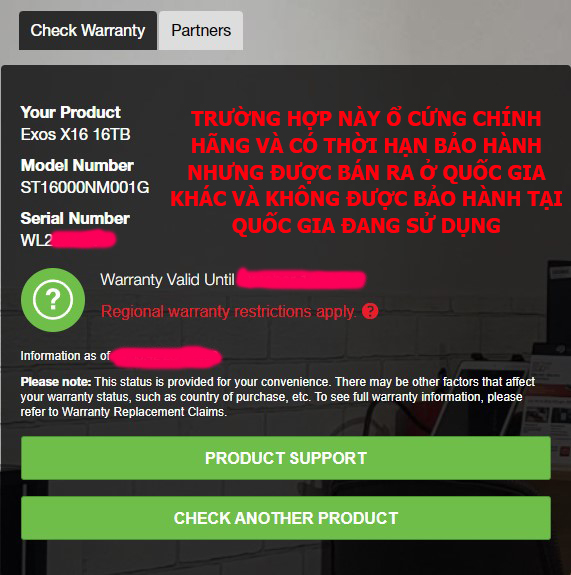 Trong trường hợp này ổ cứng bạn đang kiểm tra chính hãng Seagate được bán ra tại một quốc gia khác và chỉ được bảo hành tại quốc gia đó không được bảo hành tại quốc gia mà bạn đang kiểm tra.