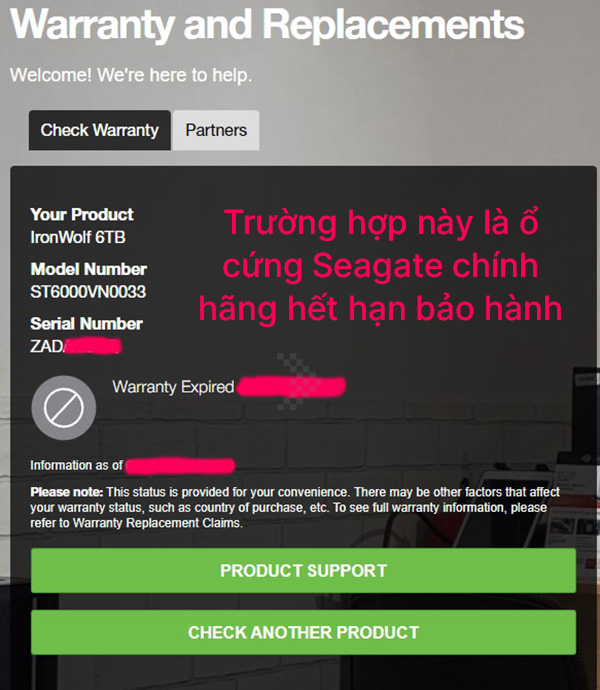 Trường hợp 5: Ổ cứng Seagate chính hãng còn hạn bảo hành và dịch vụ