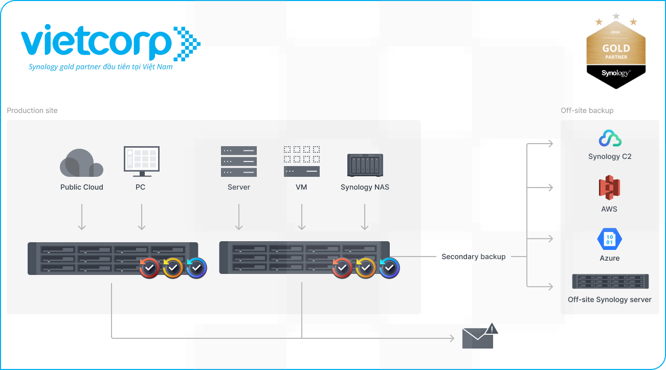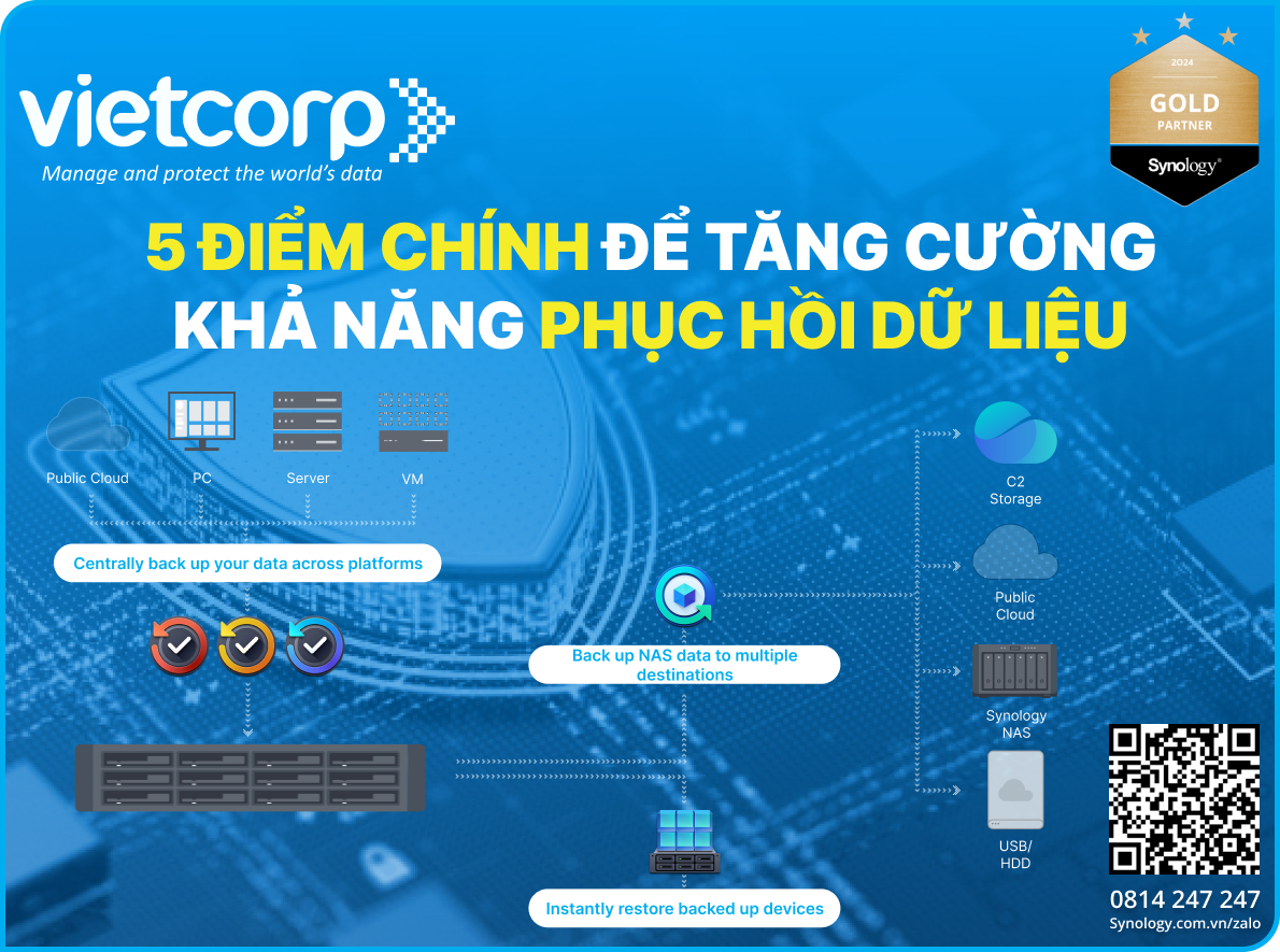 Sự cố CrowdStrike là một lời nhắc nhở rằng việc bảo vệ và phục hồi dữ liệu là yếu tố then chốt để đảm bảo sự liên tục trong hoạt động kinh doanh. Không ai có thể dự đoán trước những sự cố sẽ xảy ra, nhưng với một chiến lược sao lưu và phục hồi dữ liệu vững chắc, doanh nghiệp của bạn có thể sẵn sàng đối phó với mọi tình huống. Tại Vietcorp, chúng tôi tự hào là Synology Gold Partner với gần 20 năm kinh nghiệm trong lĩnh vực CNTT. Chúng tôi cam kết mang đến các giải pháp lưu trữ và phục hồi dữ liệu mạnh mẽ, giúp bảo vệ doanh nghiệp của bạn khỏi những rủi ro không lường trước, từ đó đảm bảo hoạt động kinh doanh luôn an toàn và liên tục.